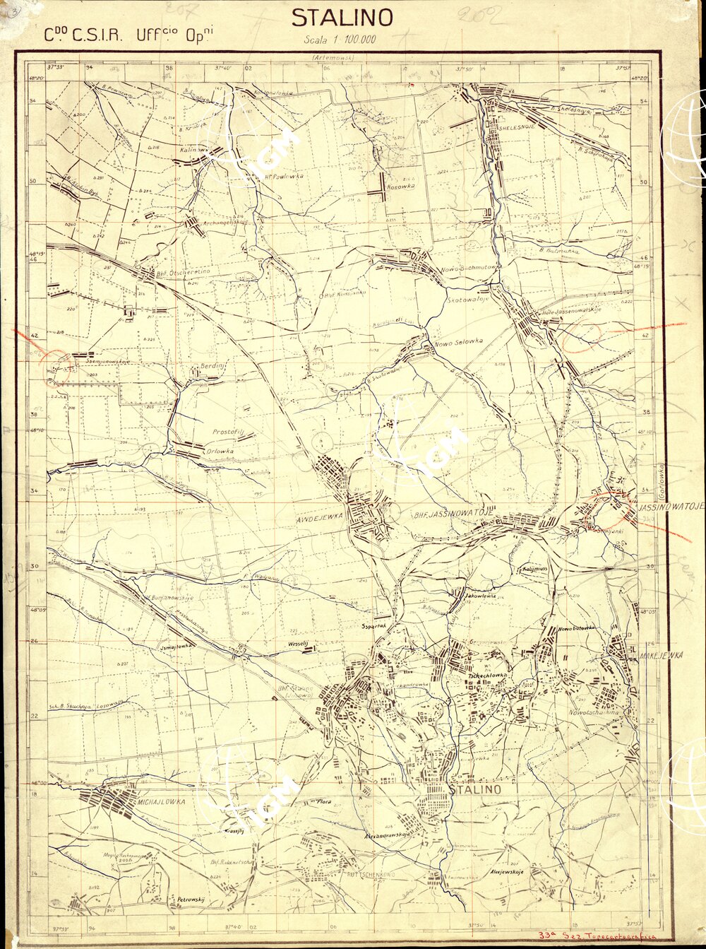 Copia eliografica allestita dalla 33° sezione topocartografica dell’ ufficio operazioni del C.S.I.R.