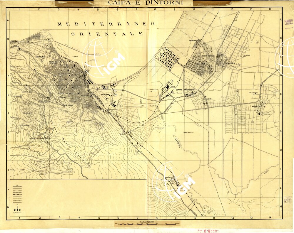 Originale disegnato a penna su carta lucida per l’ allestimento della carta di Caifa e dintorni allla scala di 1:20.000 ( File SE007892 )