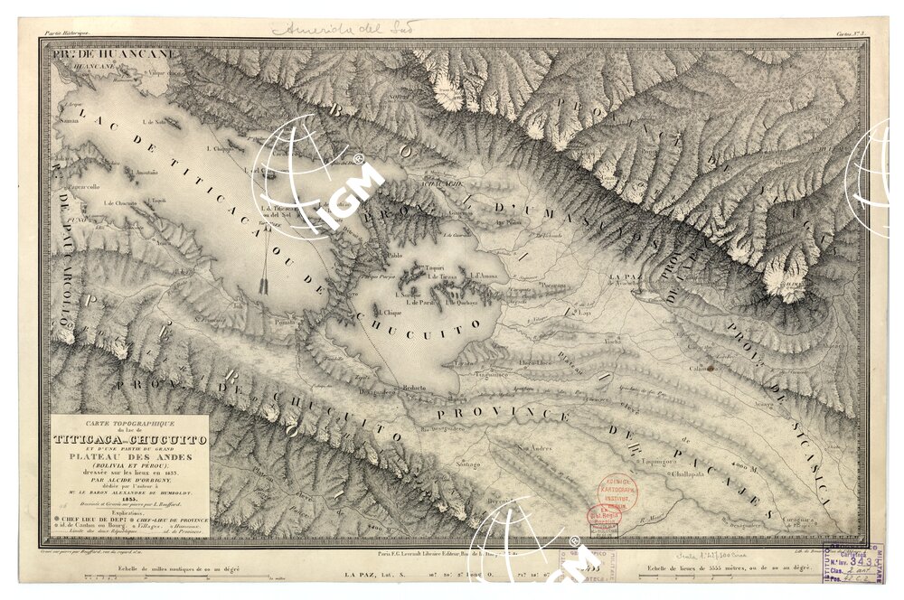 AMERICA – CARTE TOPOGRAPHIQUE DU LAC TITICACA OU CHUCUITO ET D’UNE PARTIE DU GRAND PALTEAU DES ANDES (BOLIVIA-PEROU)