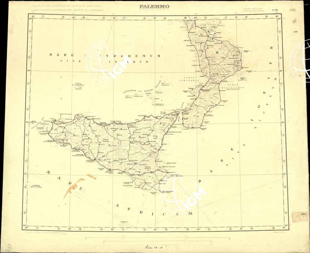 Al congresso Geografico Internazionale di Cambridge e precisamente nella seduta del 18 luglio 1928, fu proposta dal rappresentante dell’Italia, la realizzazione di una Carta Internazionale dell’Impero Romano. Tale progetto fu approvato nel 1929, in riunione tenutasi a Firenze. Fu stabilito che la carta avrebbe avuto le stesse caratteristiche di quella Internazionale al Milionesimo, solita numerazione e reticolato per coprire la superficie dell’Impero Romano al tempo della sua massima estensione. La compilazione della carta fu affidata a diversi stati, l’Italia ebbe il compito di eseguire i f° : L 32 Milano; L 33 Trieste; K 32 Firenze; K 33 Roma; J 33 Palermo.