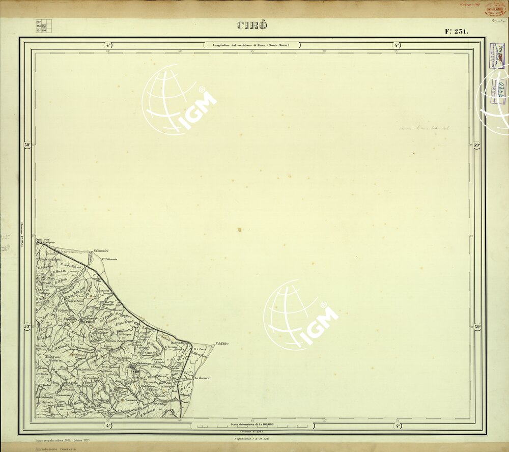 Vecchia edizione, originali in grande formato. Carta monocolore disegnata a penna su carta da disegno montata su cartone. Proiezione naturale. Rilievo del 1881/1898.