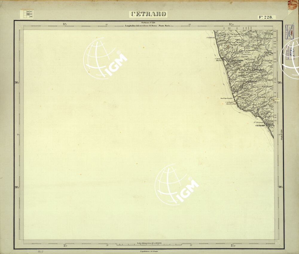 Vecchia edizione, originali in grande formato. Carta monocolore disegnata a penna su carta da disegno montata su cartone. Proiezione naturale. Rilievo del 1881/1898.