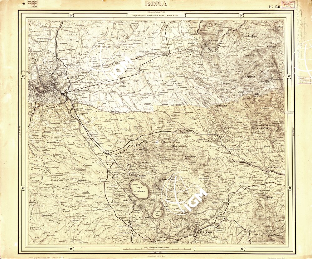 Edizione a tratteggio, originali in grande formato. Carta monocolore disegnata a penna su carta da disegno montata su cartone. Proiezione naturale. Rilievo del 1880’1892.
