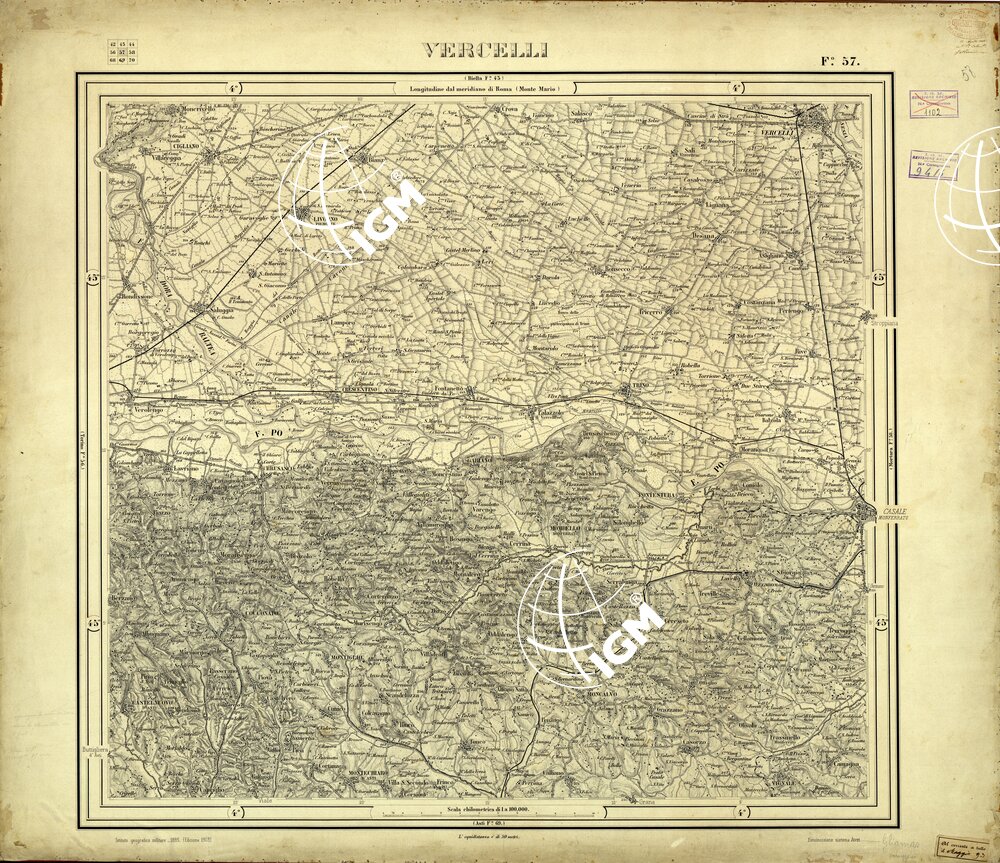 Edizione a tratteggio, originali in grande formato. Carta monocolore disegnata a penna su carta da disegno montata su cartone. Proiezione naturale. Rilievo del 1880’1892.