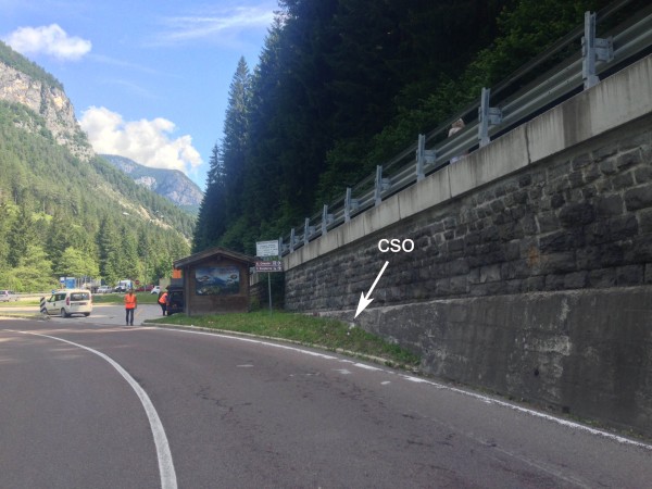 | Contrassegni | [{"simbolo_contrassegno":"B1","materializzazione":"(CSO) – Bullone infisso sul basamento del muro di sostegno, a monte della strada, prima del ponte."}] |
