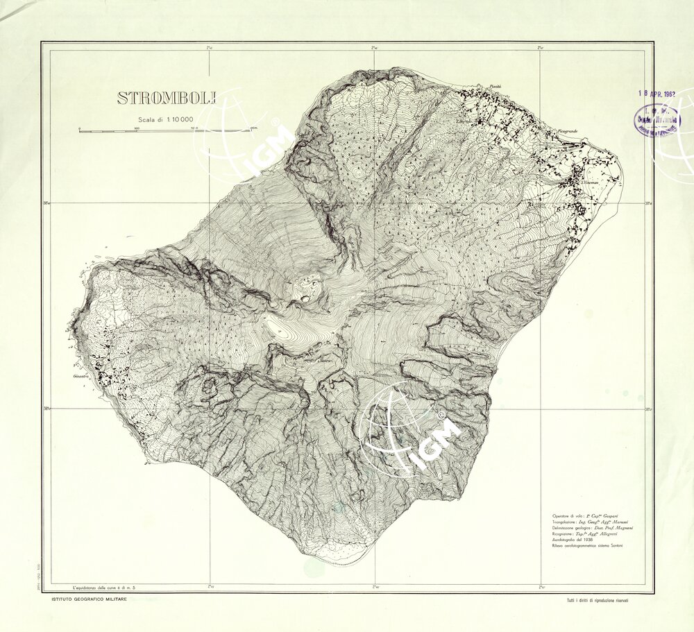 Carta disegnata nel 1938 dalla Divisione Cartografica dell’ IGM su rilievi aerofotogrammetrici appoggiati a punti trigonometrici ripristinati e raffittiti.