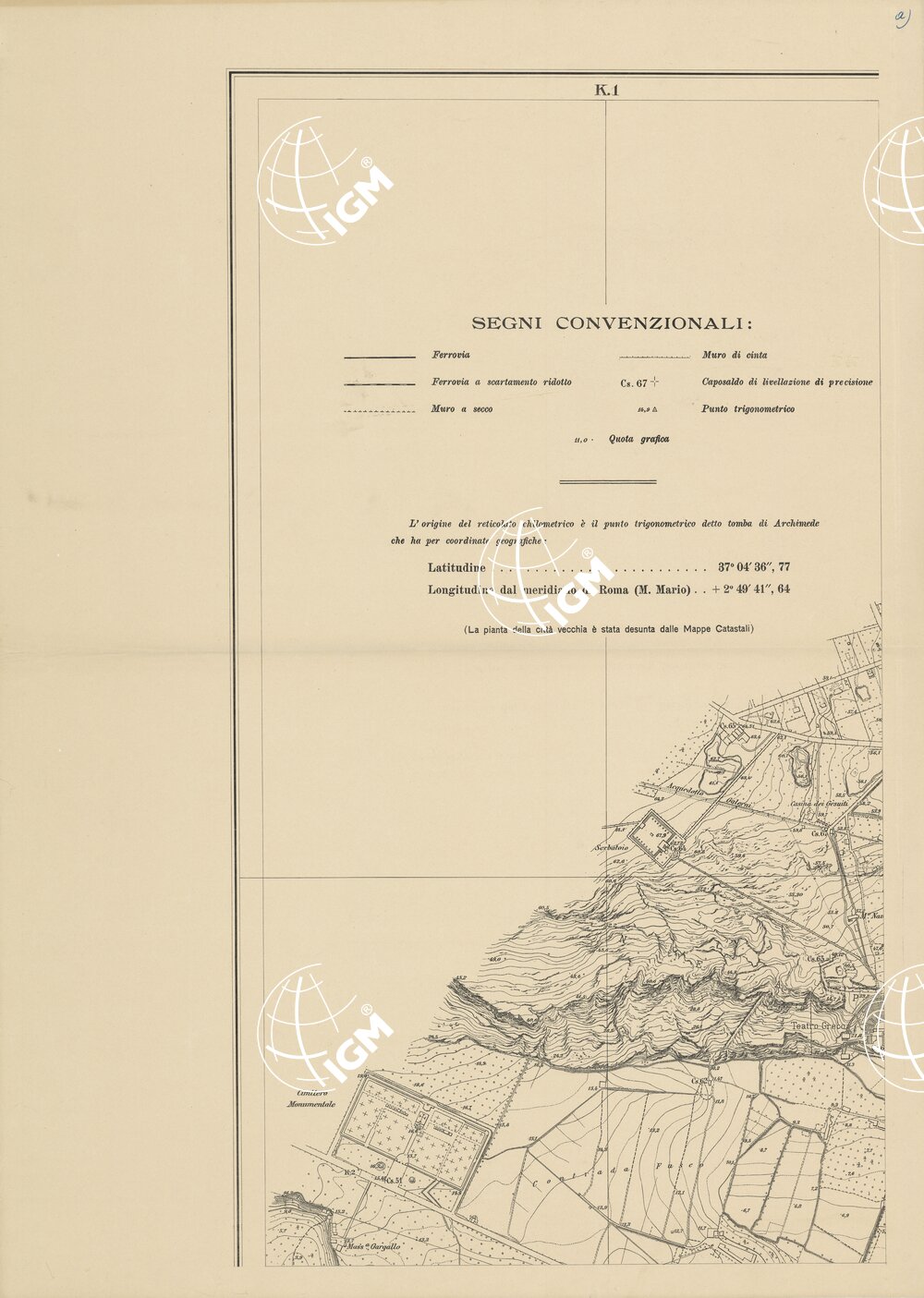 | Titolo proprio | PIANO TOPOGRAFICO DI SIRACUSA E DINTORNI – SEZIONE A |