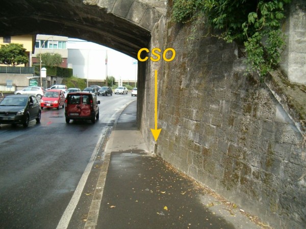 [{"simbolo_contrassegno":"B1","materializzazione":"(CSO) – Bullone infisso presso l'estremo del muro d'ala sud-ovest."}]