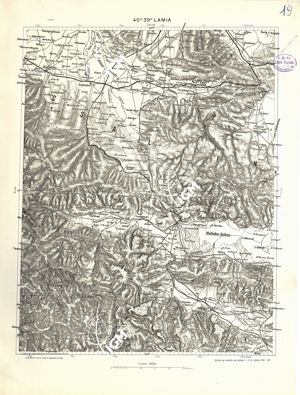 Carta dell’Albania e Grecia al 200.000; stampa del 1940; 4 colori; equidistanza delle curve m. 100