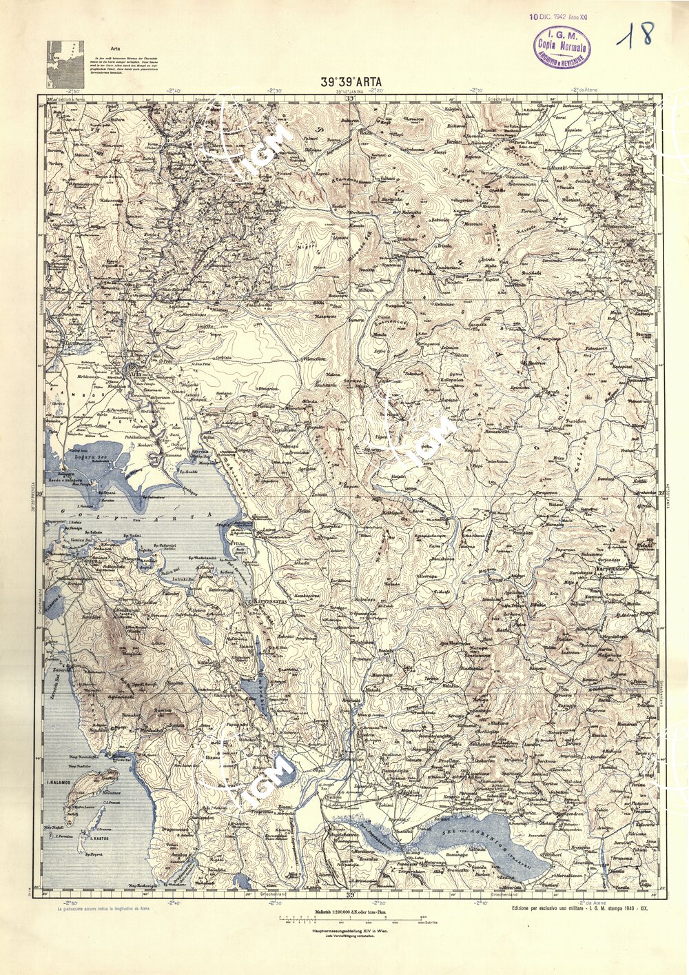 Carta dell’Albania e Grecia al 200.000; stampa del 1940; 4 colori; equidistanza delle curve m. 100