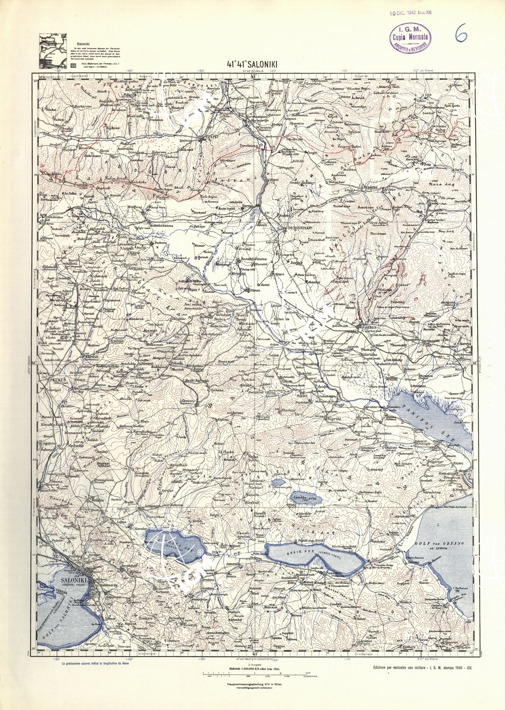 Carta dell’Albania e Grecia al 200.000; stampa del 1940; 4 colori; equidistanza delle curve m. 100
