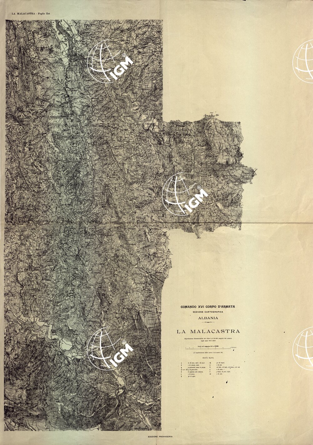 Riproduzione fotomeccanica dei rilievi al 50.000 eseguiti dal nemico negli anni 1917’18, operatori sez. cartografica – comando XVI corpo d’Armata.
