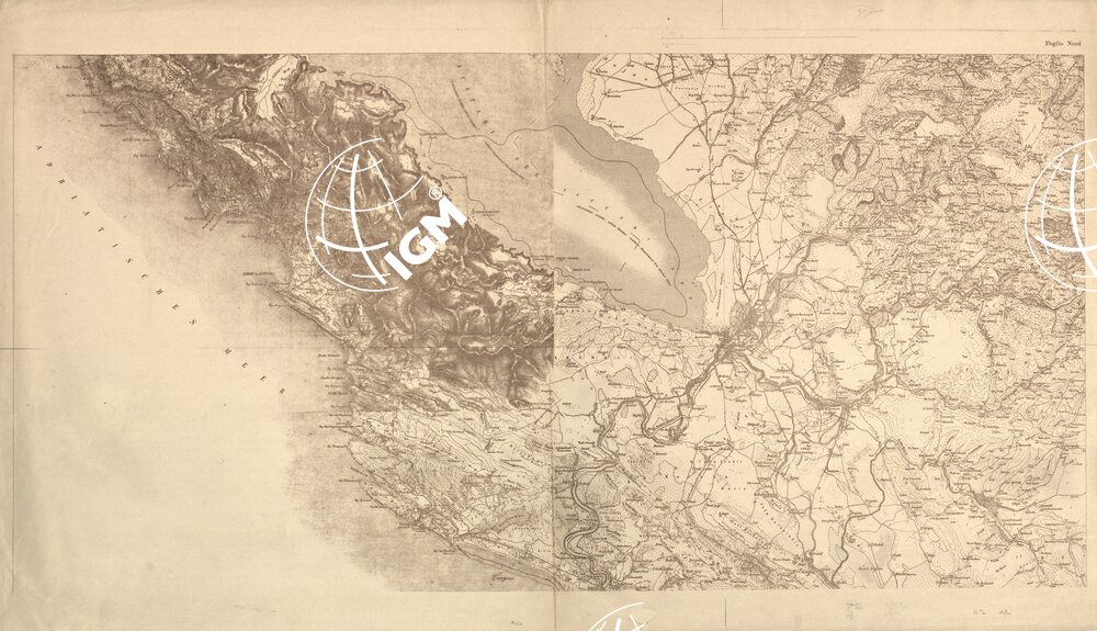 Carta in 2 fogli ( Nord – Sud ) derivata da riproduzioni di carte Austriache, Stampa IGM 1919