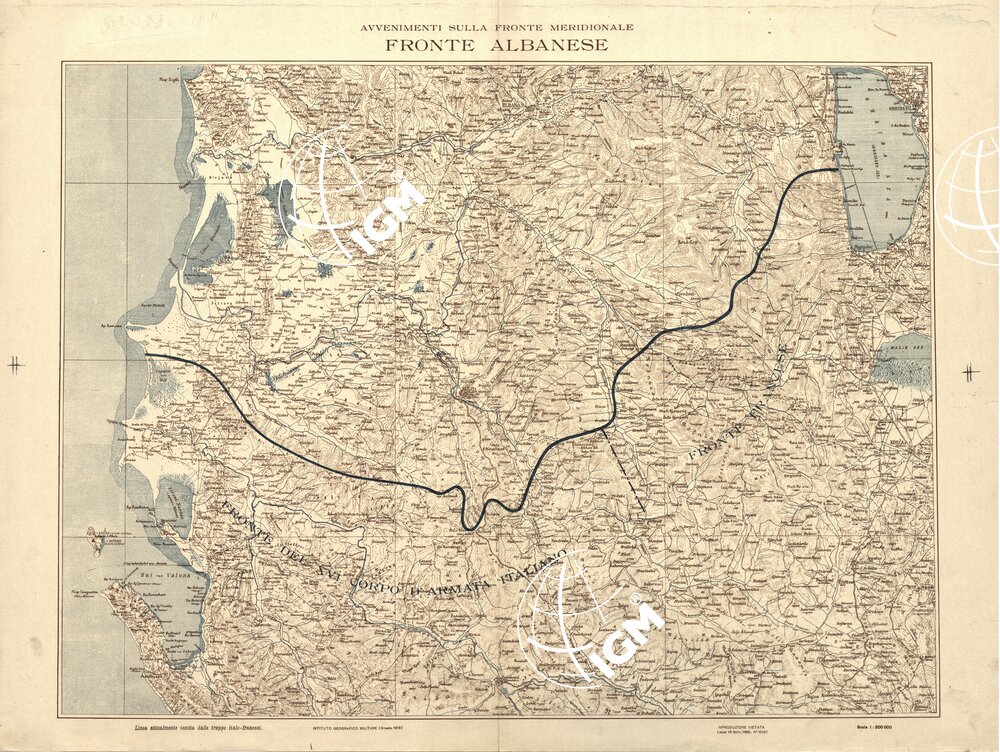 La carta riporta la linea del fronte tenuto dalle Truppe Italiane e Francesi.