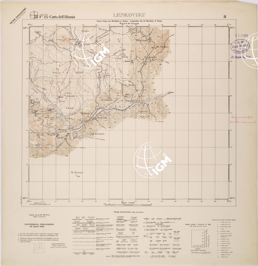 CARTA DELL’ALBANIA FOGLIO 25 II LESKOVIKU