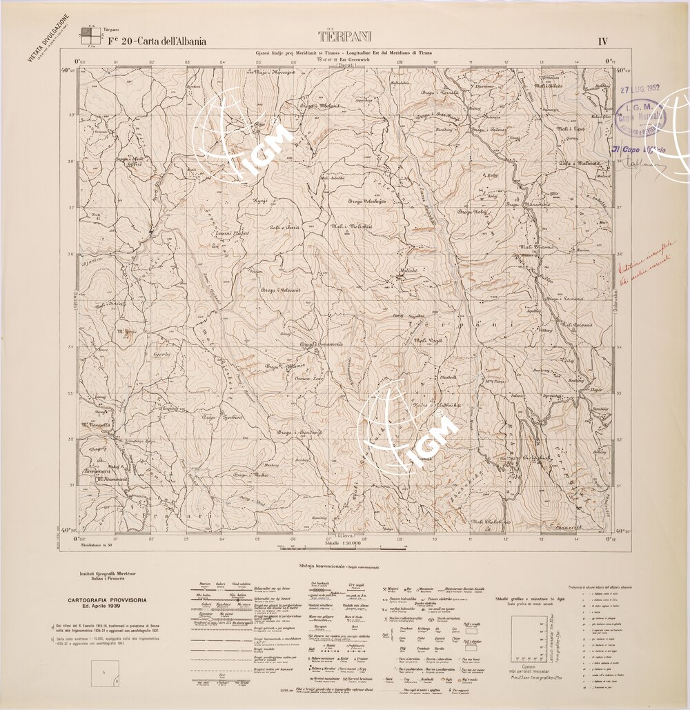 CARTA DELL’ALBANIA FOGLIO 20 IV TERPANI