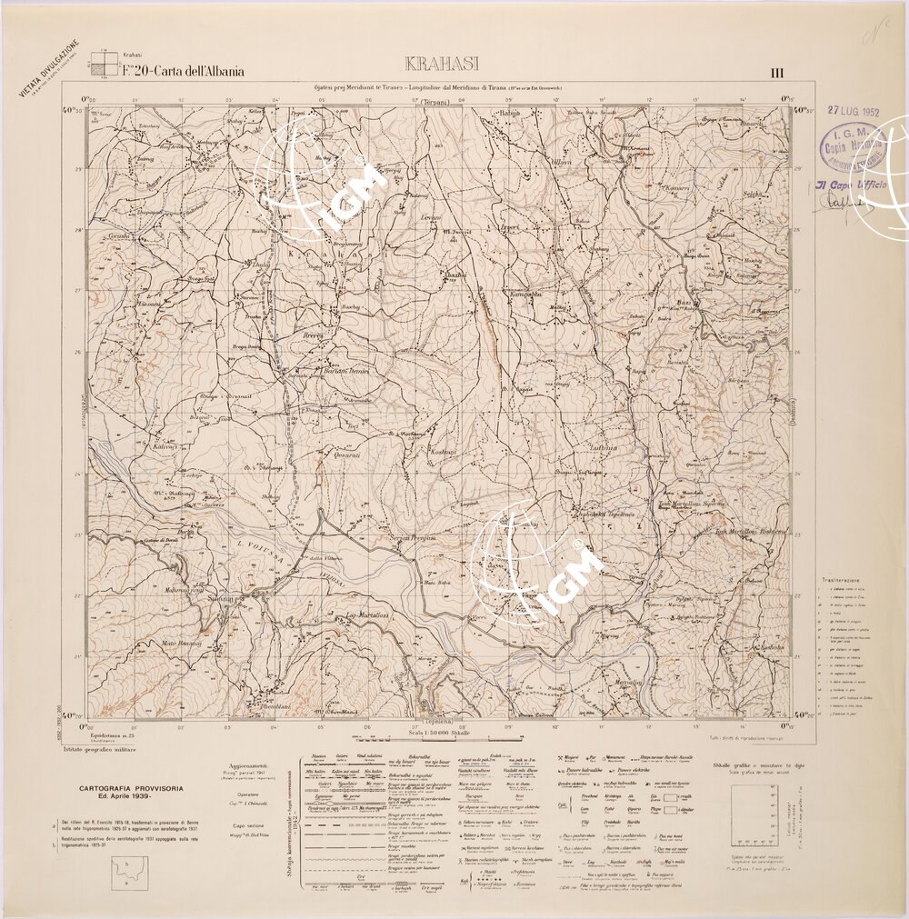 CARTA DELL’ALBANIA FOGLIO 20 III KRAHASI