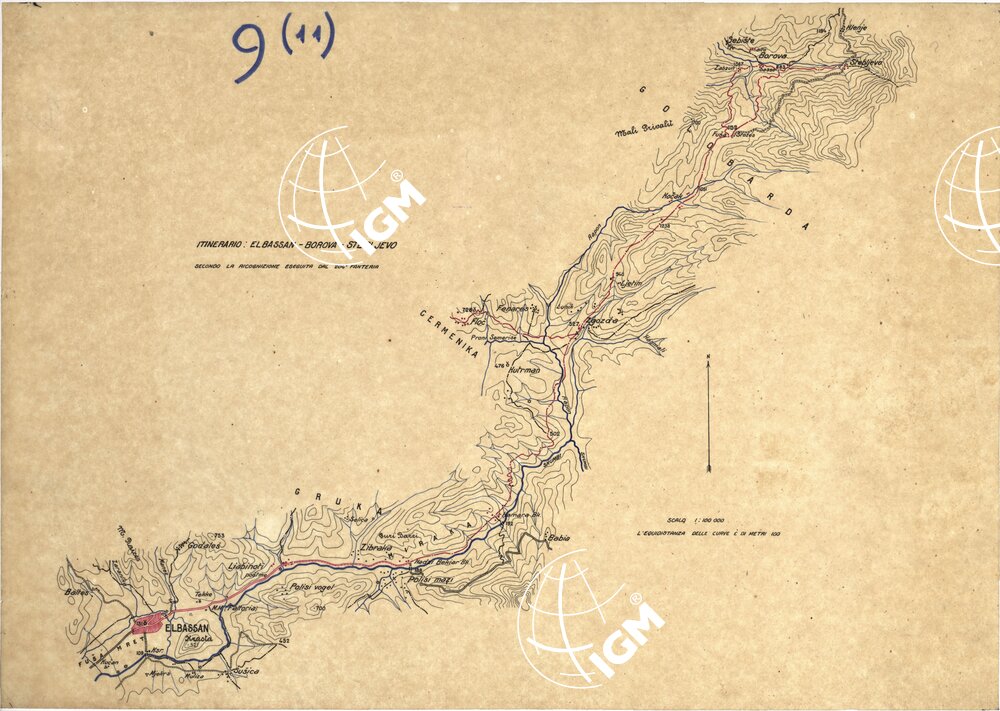 Originale disegnato a penna su carta lucida dalla ricognizione del 204° Fanteria.