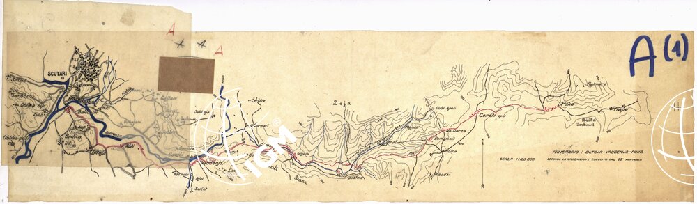 Originale disegnato a penna su carta lucida dalla ricognizione del 68° Fanteria.