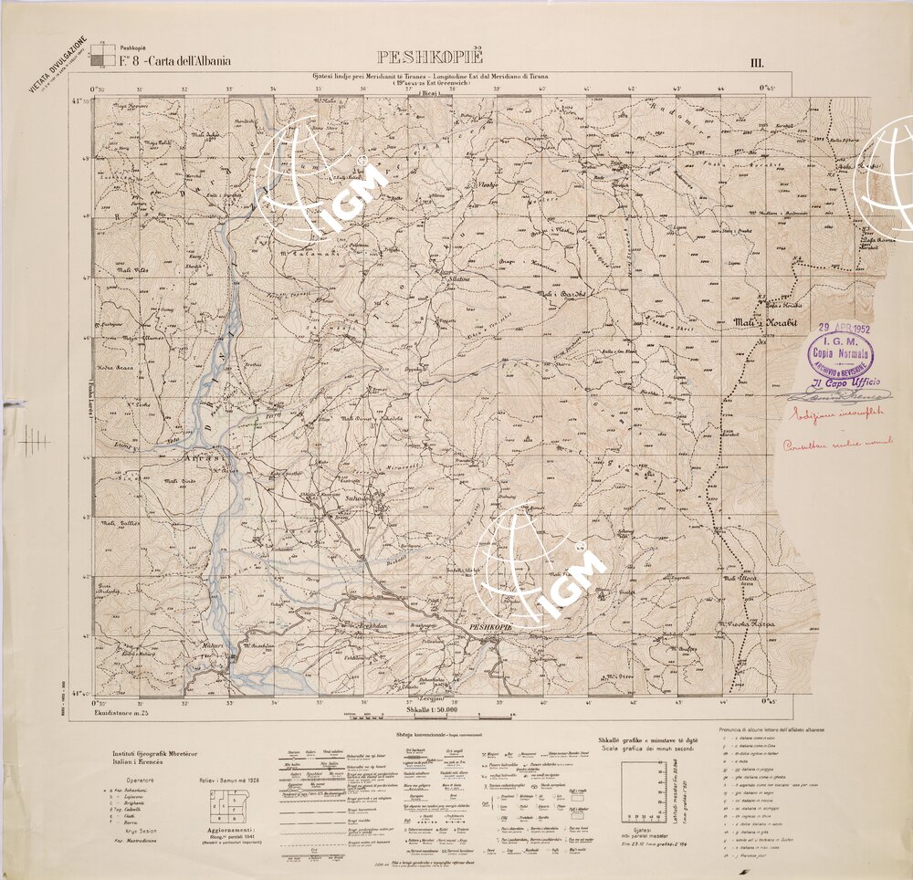 CARTA DELL’ALBANIA FOGLIO 8 III PESHKOPIE