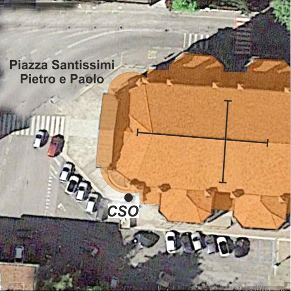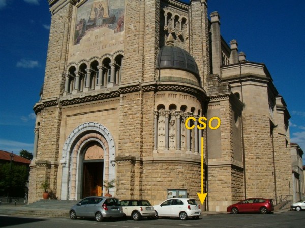 [{"simbolo_contrassegno":"B1","materializzazione":"(CSO) – Bullone a cm 80 dall'angolo destro della parete curva a destra della facciata."}]