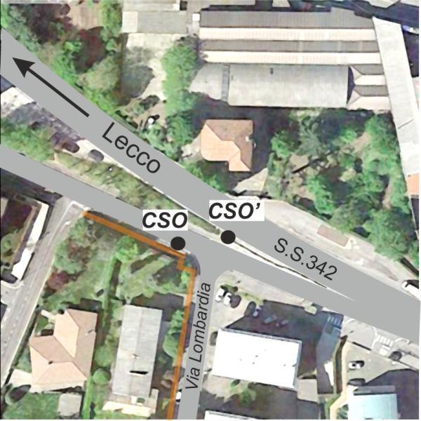 [{"simbolo_contrassegno":"B1","materializzazione":"(CSO) – Bullone infisso nel muretto a retta del terrapieno presso l'incrocio con via Lombardia."},{"simbolo_contrassegno":"B2","materializzazione":"(CSO') – Chiodo anonimo infisso sul cordolo, a cm 15 dall'estremo, lato opposto della strada, al centro del bivio."}]