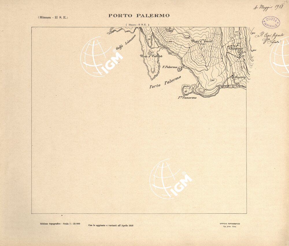 Carta ricavata mediante ingrandimento fotomeccanico dai rilievi alla scala di 1:50.000 dalla Sezione Cartografica del Comando XVI Corpo d’ Armata in Albania.