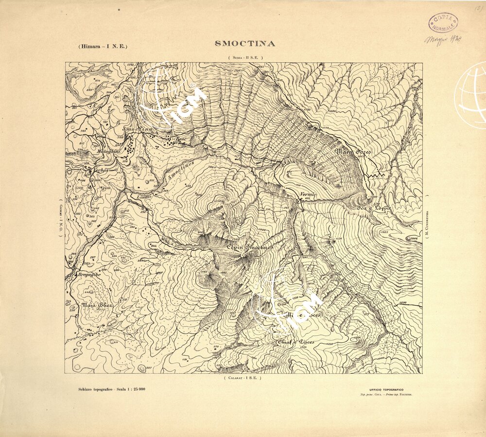 Carta ricavata mediante ingrandimento fotomeccanico dai rilievi alla scala di 1:50.000 dalla Sezione Cartografica del Comando XVI Corpo d’ Armata in Albania.