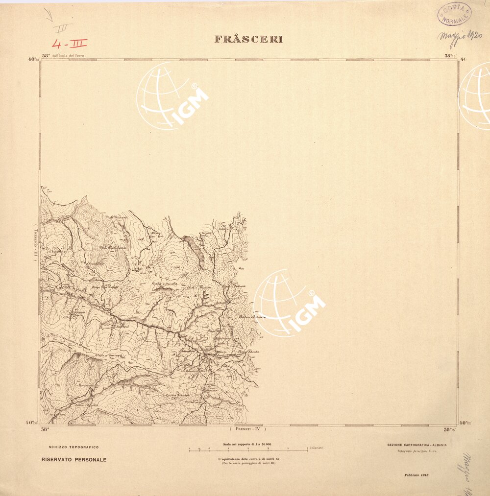 Carta della Sezione Cartografica del Comando XVI Corpo d’ Armata in Albania.