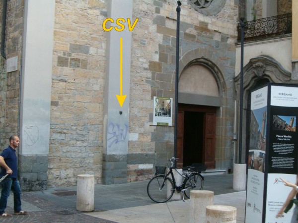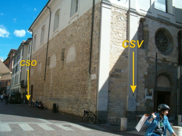[{"simbolo_contrassegno":"B1","materializzazione":"(CSO) – Bullone infisso 20 cm a sinistra della porta sul fianco sinistro"},{"simbolo_contrassegno":"V1","materializzazione":"(CSV) – Mensola infissa sulla facciata, a sinistra della porta."}]