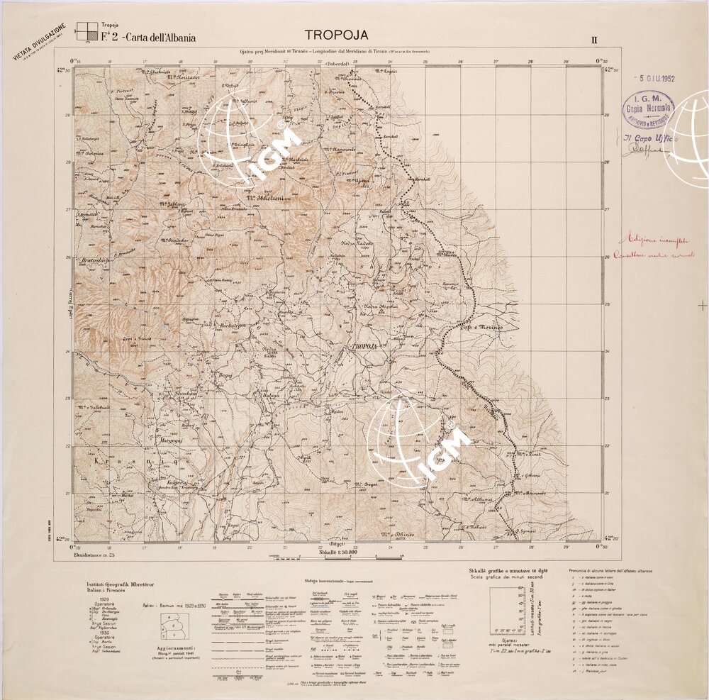 CARTA DELL’ALBANIA FOGLIO 2 II TROPOJA
