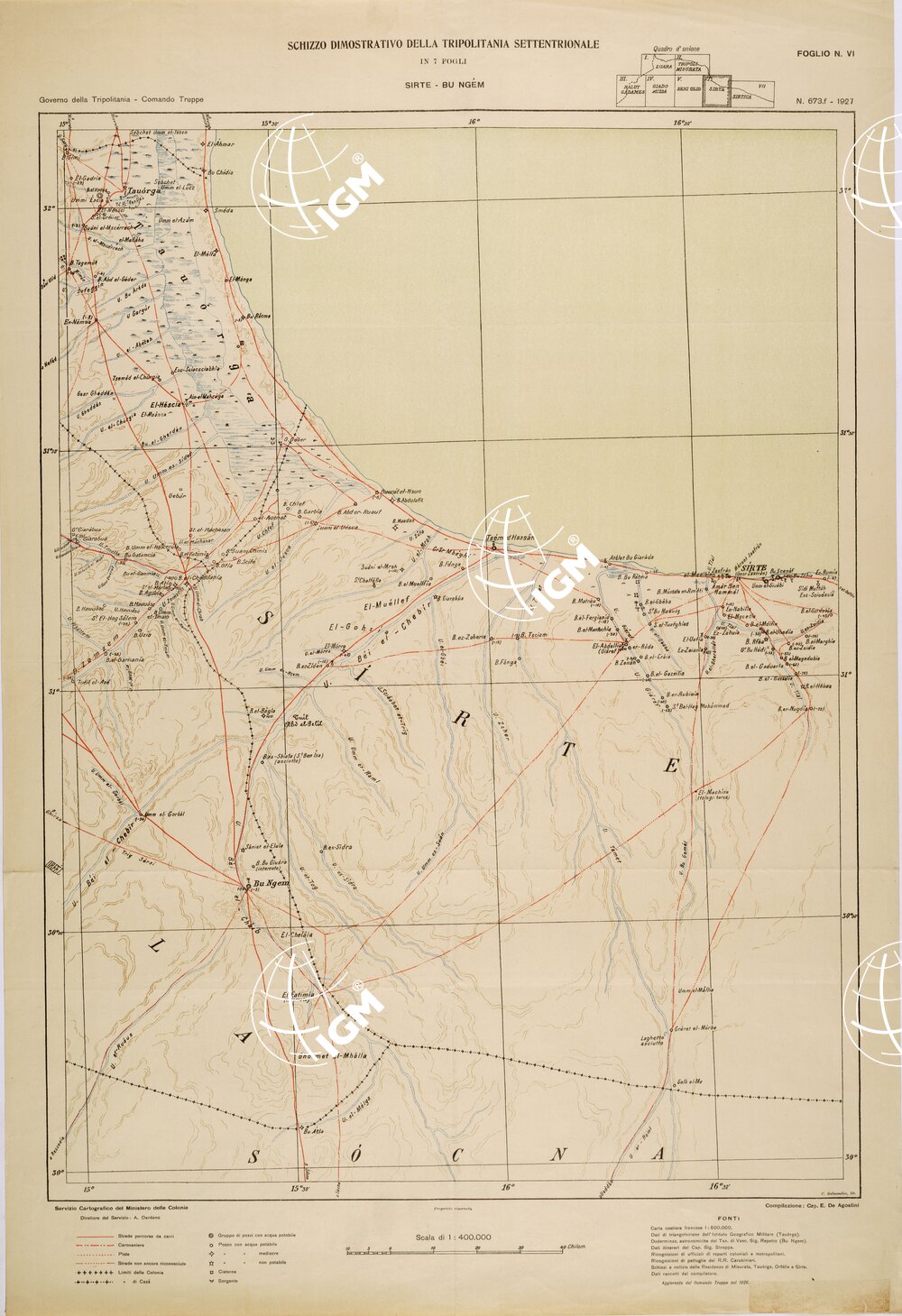 SCHIZZO DIMOSTRATIVO DELLA TRIPOLITANIA SETTENTRIONALE – FOGLIO VI – SIRTE – BU NGEM.
