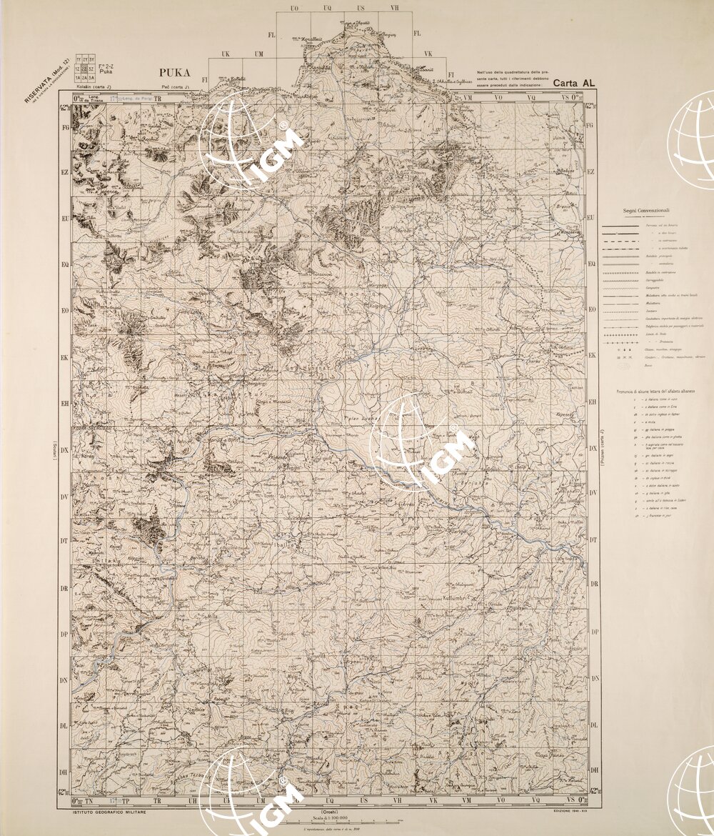 Disegni originali a penna su carta lucida montata su cartoncino americano, a colori separati: nero,blu,bistro,verde. Gli originali si trovano insieme a quelli della carta”J”, armadio 77 sup. Equidistanza tra le curve di m.100