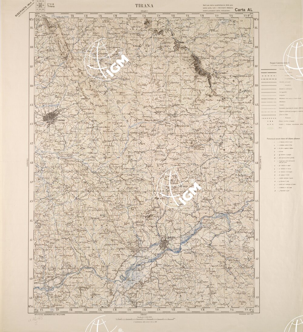 Disegni originali a penna su carta lucida montata su cartoncino americano, a colori separati: nero,blu,bistro,verde. Gli originali si trovano insieme a quelli della carta”J”, armadio 77 sup. Equidistanza tra le curve di m.100