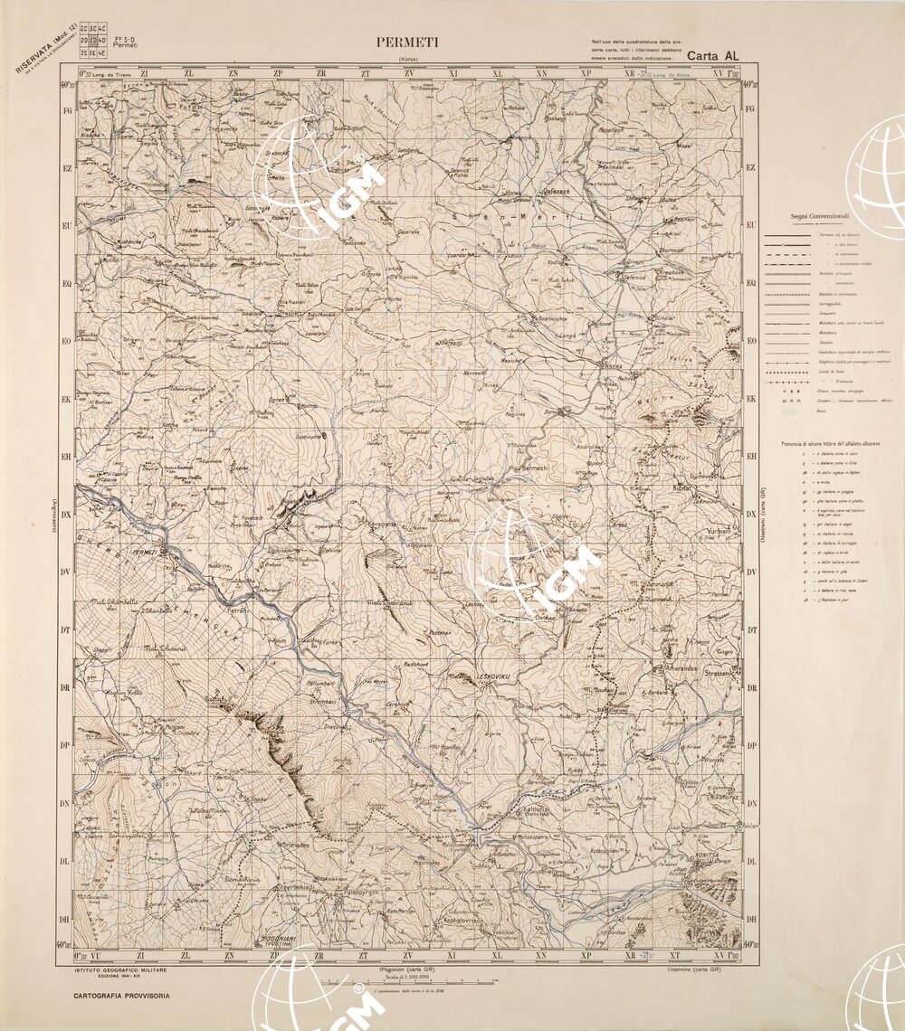 Disegni originali a penna su carta lucida montata su cartoncino americano, a colori separati: nero,blu,bistro,verde. Gli originali si trovano insieme a quelli della carta”J”, armadio 77 sup. Equidistanza tra le curve di m.100