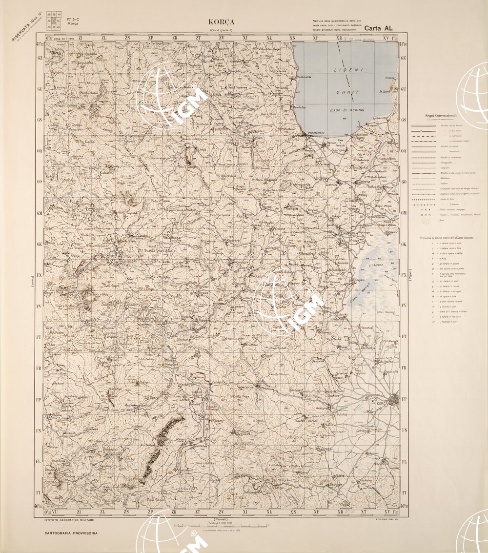 Disegni originali a penna su carta lucida montata su cartoncino americano, a colori separati: nero,blu,bistro,verde. Gli originali si trovano insieme a quelli della carta”J”, armadio 77 sup. Equidistanza tra le curve di m.100