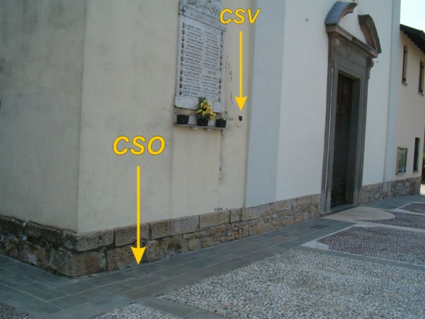 [{"simbolo_contrassegno":"P3","materializzazione":"(CSO) – Chiusino alla base del campanile, presso lo spigolo sinistro della facciata principale. Alto non misurabile."},{"simbolo_contrassegno":"V1","materializzazione":"(CSV) – Mensola infissa sulla facciata principale del campanile, presso l'estremlo destro."},{"simbolo_contrassegno":"B6","materializzazione":"(CSO') – Centrino \"tipo GPS-C\" a lato del tombino tra la fermata autobus e il sottopassaggio pedonale."}]