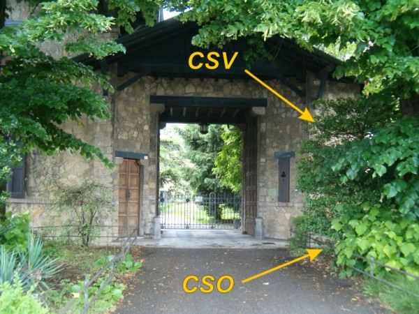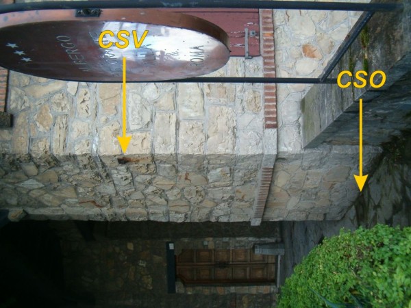 | Contrassegni | [{"simbolo_contrassegno":"P3","materializzazione":"(CSO) – Ciusino in ghisa alla base della facciata della portineria, 80 cm a destra sell'ingresso."},{"simbolo_contrassegno":"V1","materializzazione":"(CSV) – Mensola infissa sulla facciata della portineria, in corrispondenza del cso."}] |
