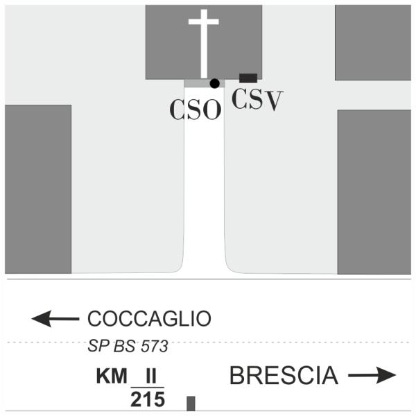 [{"simbolo_contrassegno":"B3","materializzazione":"(CSO) – Circolo inciso sulla soglia della porta di accesso alla chiesa, sulla destra entrando."},{"simbolo_contrassegno":"V3","materializzazione":"(CSV) – Piastrina antica stabilizzata sul fronte principale della chiesa parrocchiale a destra della porta d'ingresso."}]