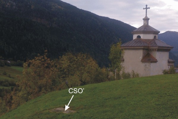 | Contrassegni | [{"simbolo_contrassegno":"B1","materializzazione":"(CSO) – Bullone infisso dei pressi dello spigolo nord-ovest del muro di contenimento antistante il cimitero."},{"simbolo_contrassegno":"B6","materializzazione":"(CSO') – Centrino in acciaio inox del tipo \"GPS C\", infisso su un plinto in calcestruzzo posto a est del cimitero su un prato."}] |