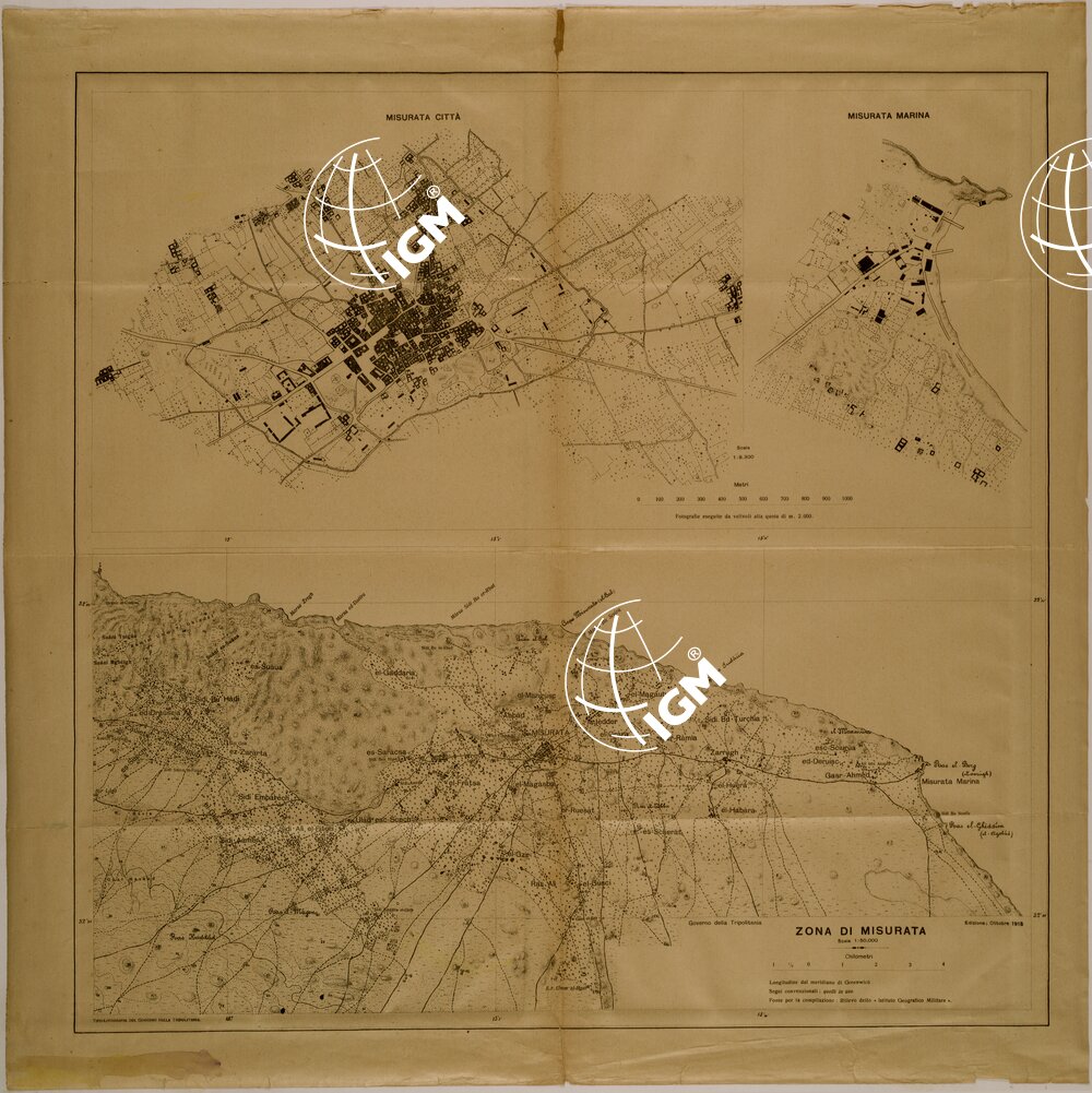 Nel foglio sono presenti 2 riquadri con il dettaglio delle zone di Misurata città e Misurata Marina alla scala di 1:8.300