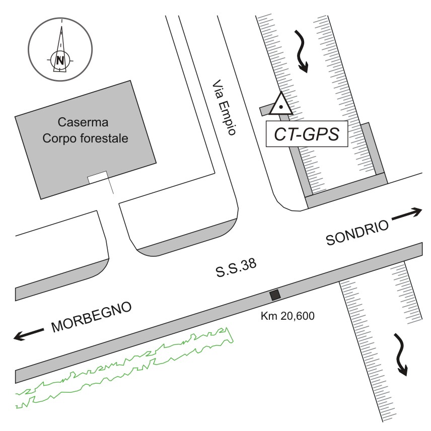 Centrino in acciaio inox del tipo "universale", infisso sul muro di sponda del canale posto sul lato destro di via Empio, subito dopo la caserma del Corpo Forestale in direzione Sondrio.