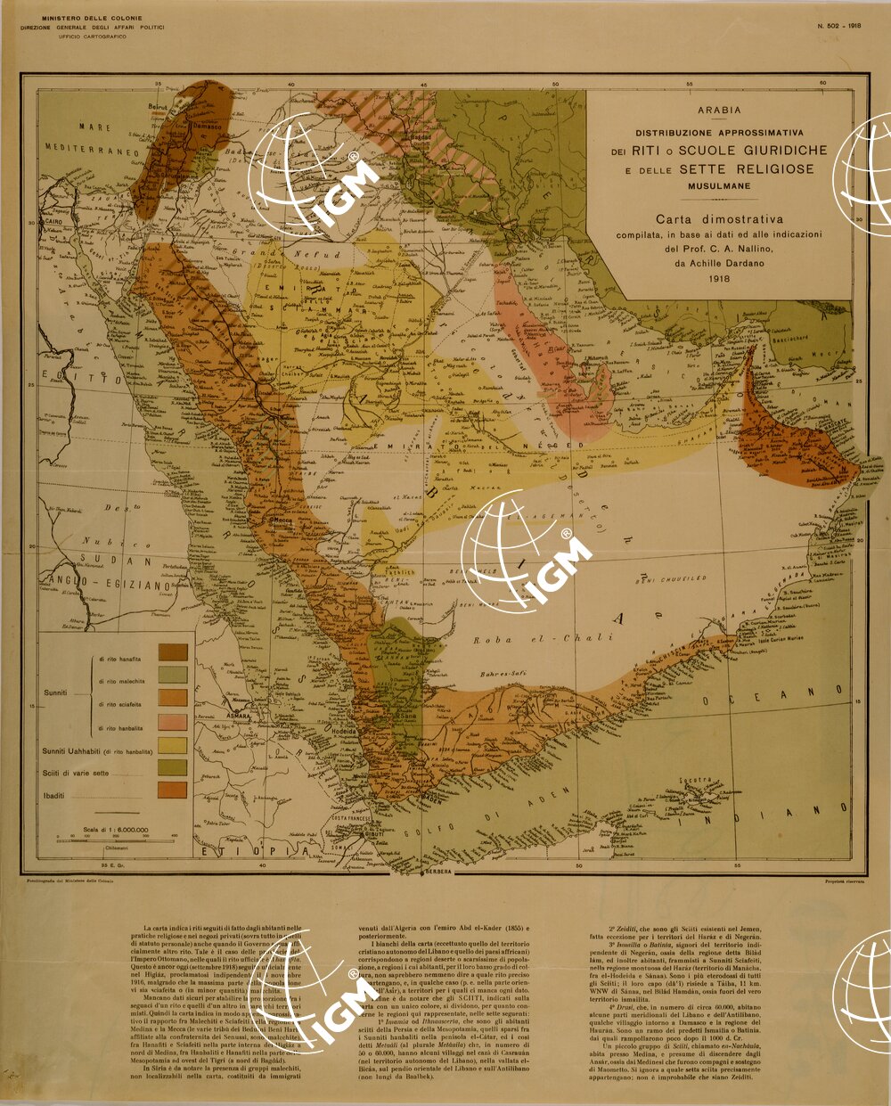 ARABIA CARTA DIMOSTRATIVA DI RITI SCUOLE GIURIDICHE SETTE RELIGIOSE MUSULMANE