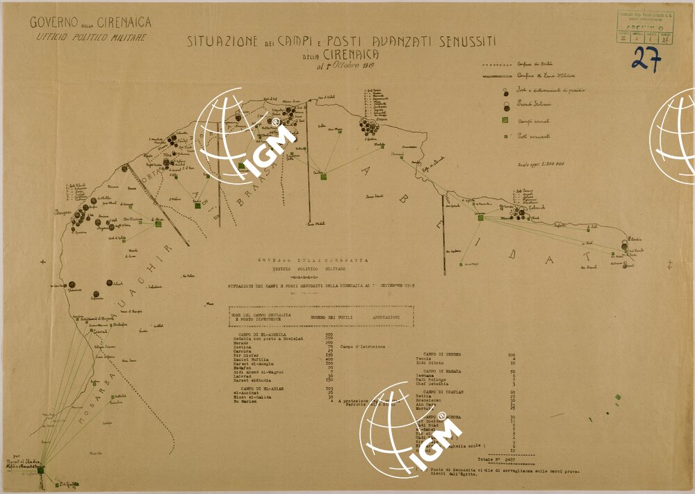 SITUAZIONE DEI CAMPI E POSTI AVANZATI SENUSSITI DELLA CIRENAICA.