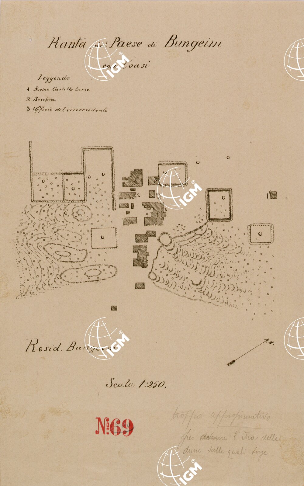 | Titolo proprio | PIANTA DEL PAESE DI BUNGEIM CON L'OASI. |