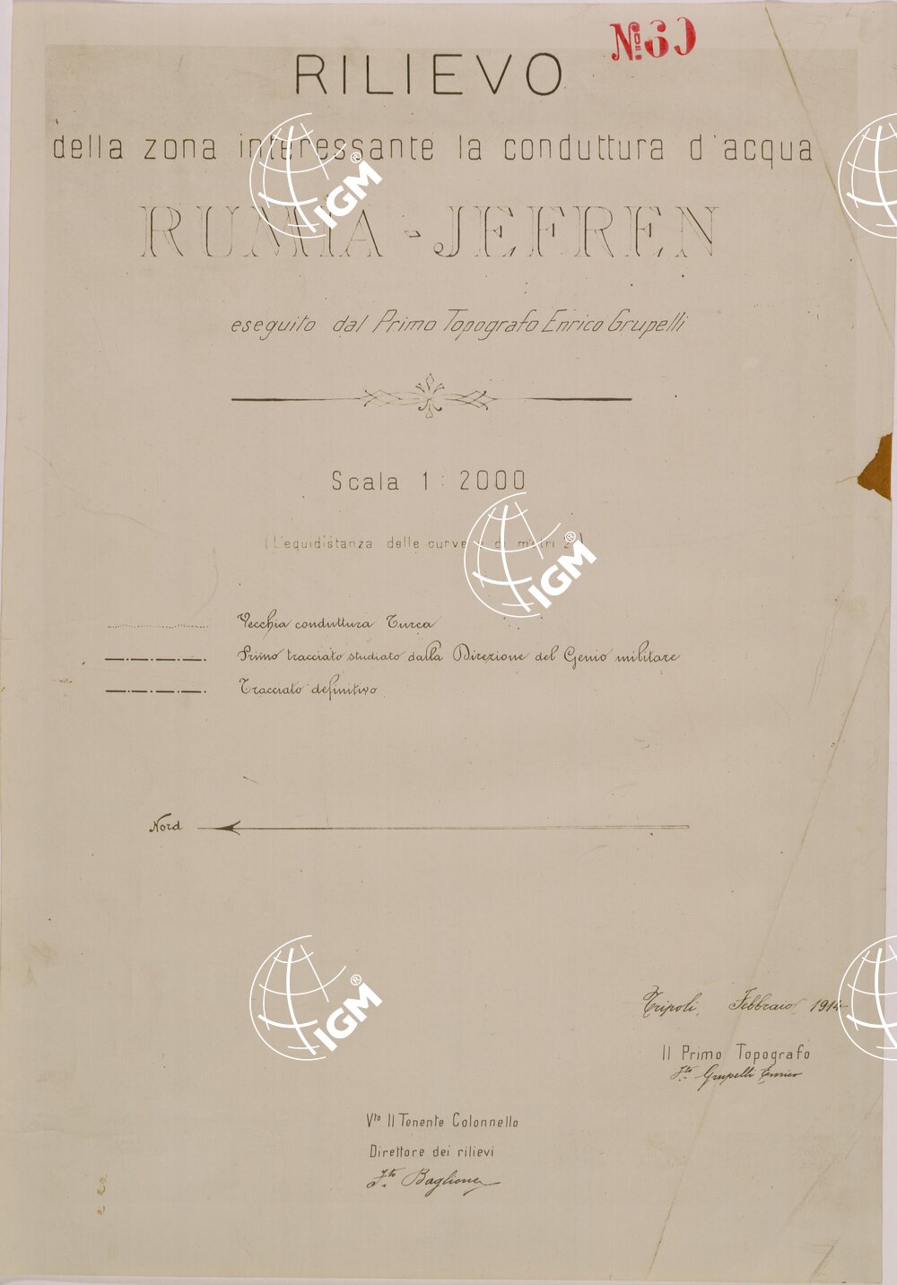 | Titolo proprio | RILIEVO DELLA ZONA INTERESSANTE LA CONDOTTURA D'ACQUA RUMIA-JEFREN – TITOLO. |