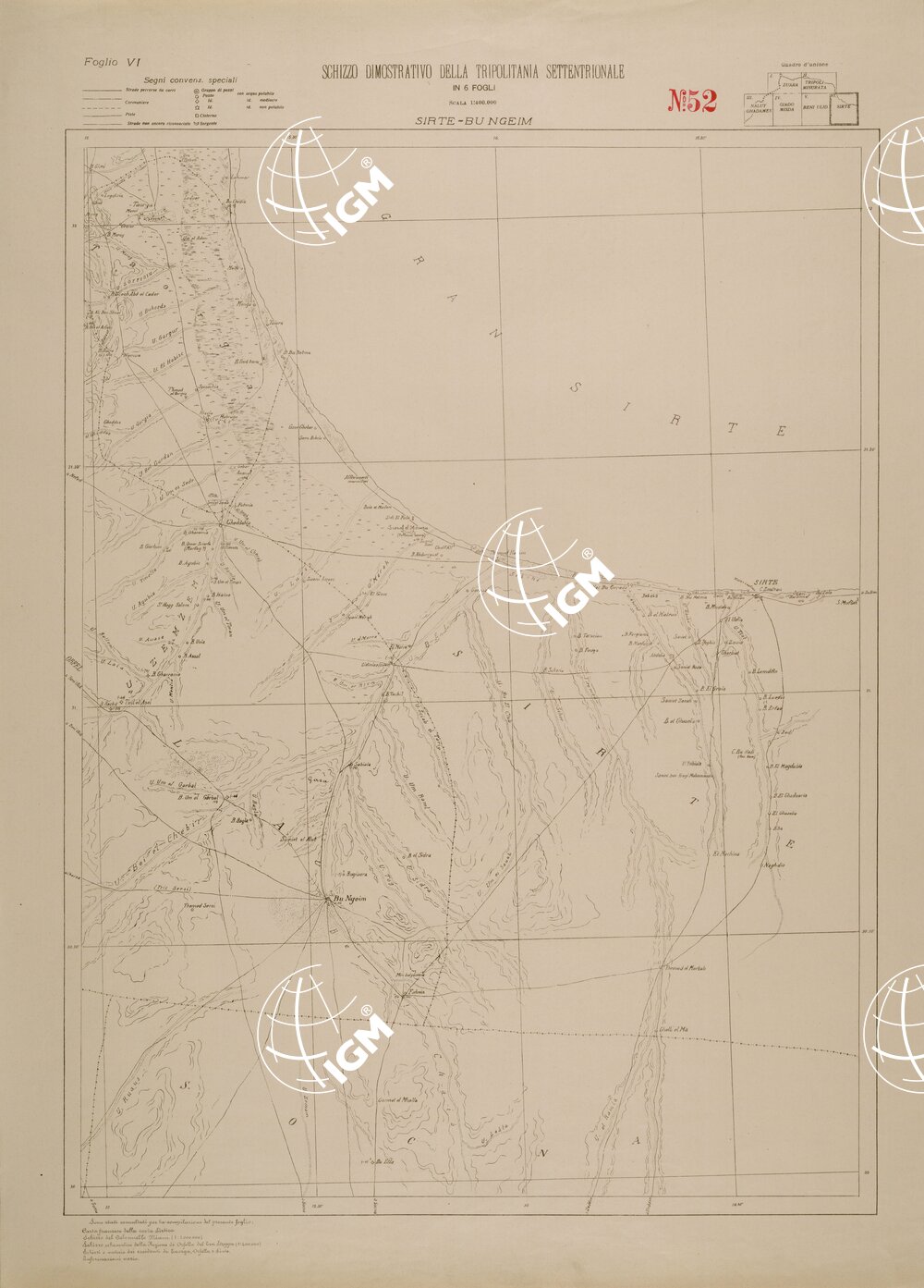 SCHIZZO DIMOSTRATIVO DELLA TRIPOLITANIA SETTENTRIONALE – SIRTE-BU NGEIM – FOGLIO VI.