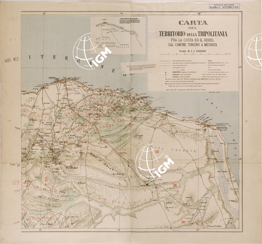 | Titolo proprio | CARTA DEL TERRITORIO DELLA TRIPOLITANIA FRA LA COSTA ED IL GEBEL DAL CONFINE TUNISINO A MESRATA – FOGLIO 2 |