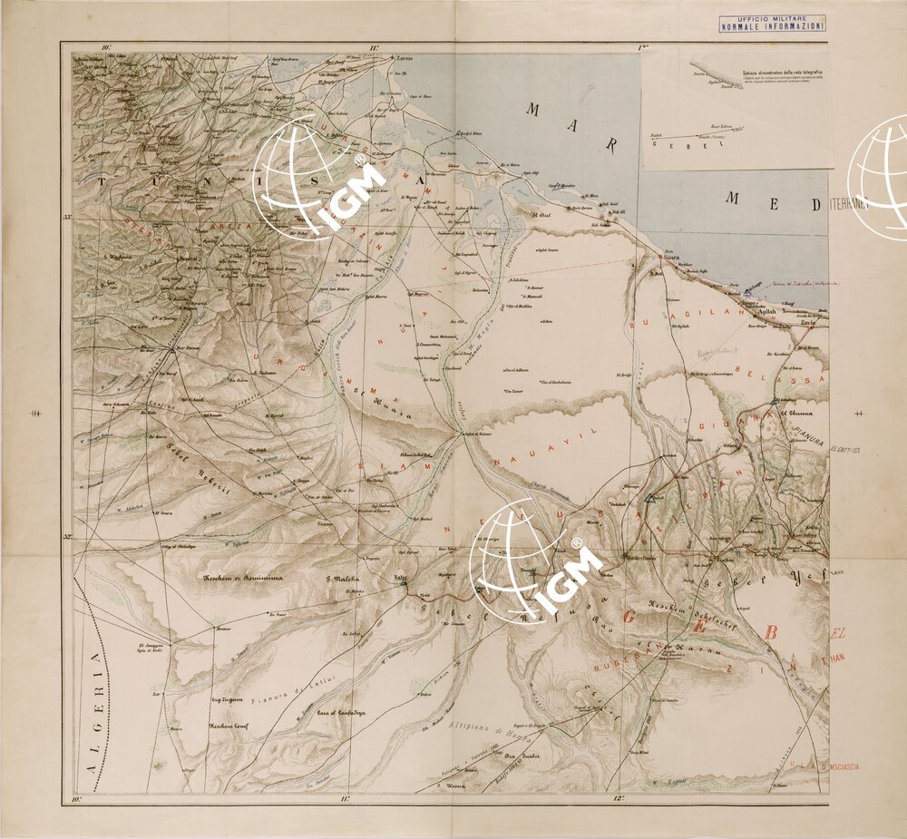 | Titolo proprio | CARTA DEL TERRITORIO DELLA TRIPOLITANIA FRA LA COSTA ED IL GEBEL DAL CONFINE TUNISINO A MESRATA- FOGLIO 1 |