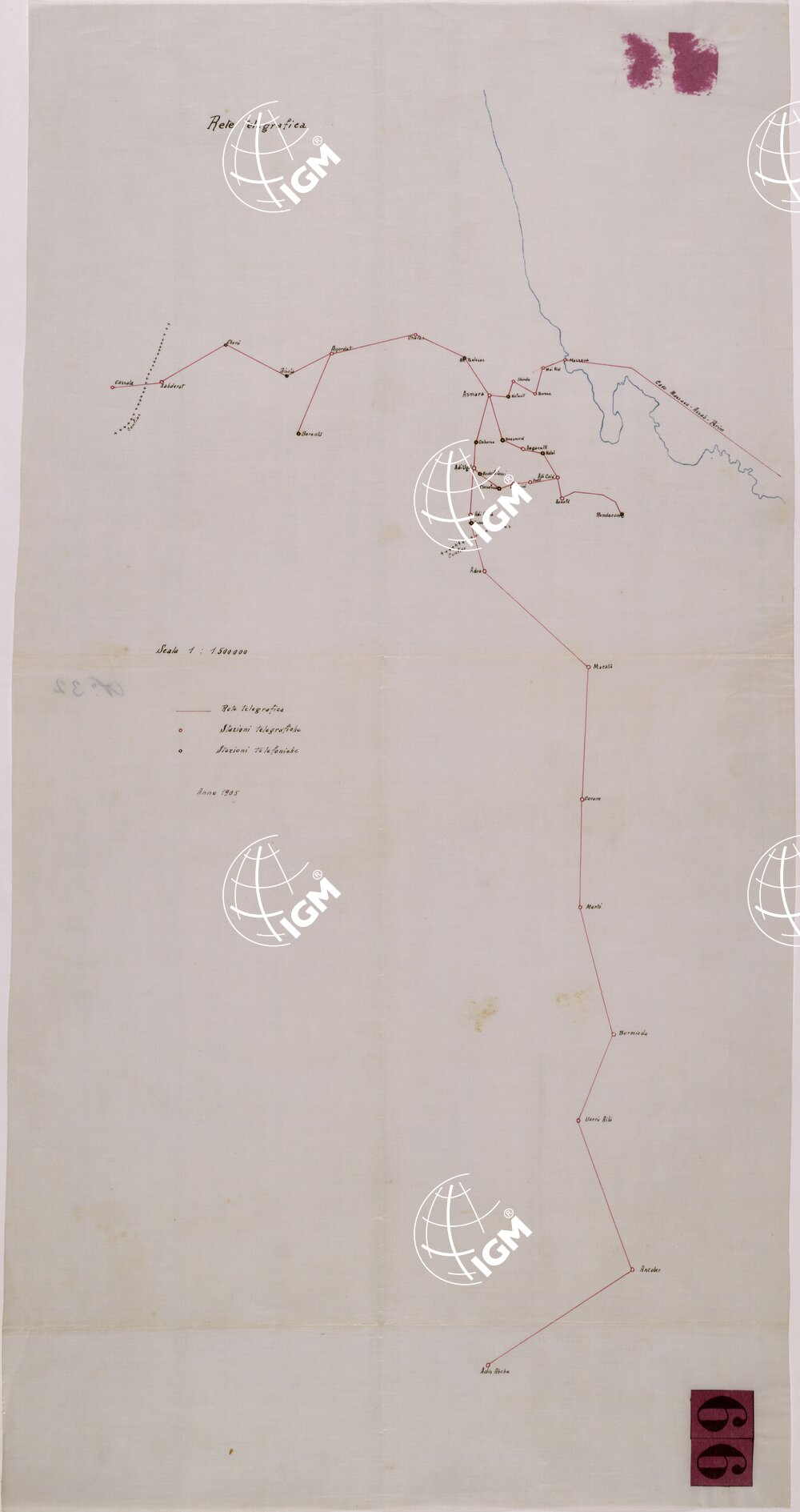 RETE TELEGRAFICA MASSAUA CASSALA ADDIS ABEBA